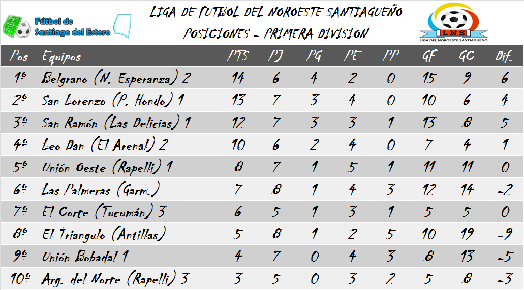 En Pozo Hondo, el local San Lorenzo recibió la visita del ascendente San Ramón de Las Delicias, con quien divieron honores igualando 1 a 1. Este empate le impidió a San Lorenzo permanecer como líder ya que Belgrano lo superó en las posiciones tras su victoria.